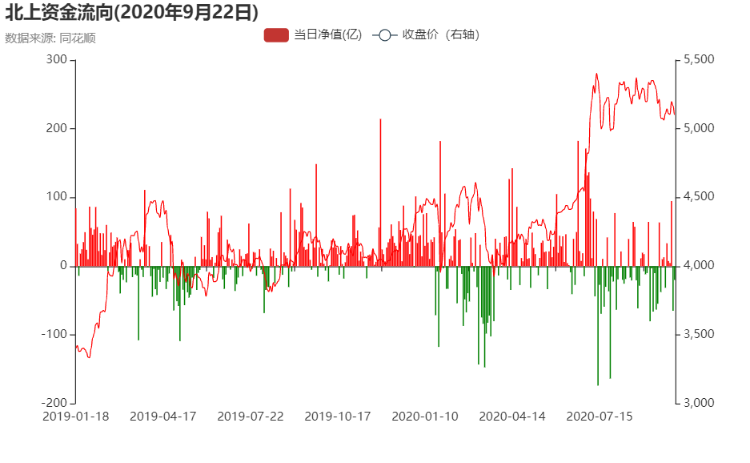 北上资金今天又流出20亿,主要流出的量集中在下午,而且是一去不回头的那种卖出,市场也跟着北上往下走。北上现在对于市场的边际影响特别大,但已经没有了指示性,这里更多是同步。