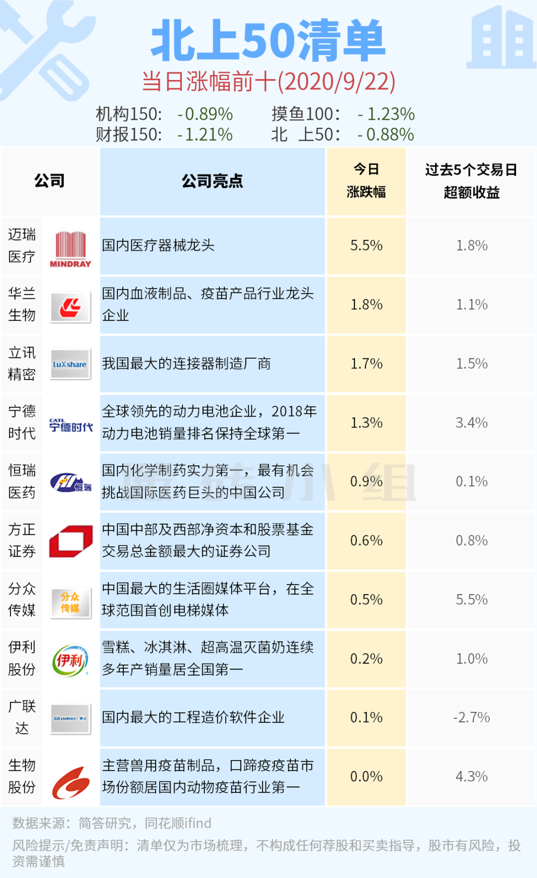 北上50方面,今天涨幅在前面的板块是医药,短期是受到欧美疫情的影响。医药这架马车前段时间跌得比较多,走到现在这个位置有企稳的迹象。