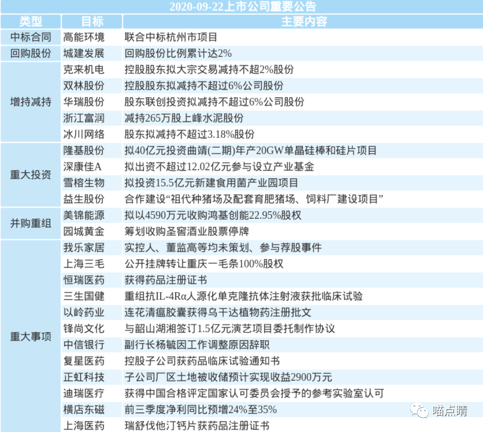 5、华谊兄弟:公司实控人王忠军、王忠磊拟未来6个月减持不超过总股份3%的公司股份,主要用于偿还股票质押融资。由于全球疫情,公司出品的八佰“荣登了”全球票房冠军,但股价却不太给力,八佰上市次日后便一路下跌,如今实控人又补上了一脚。。