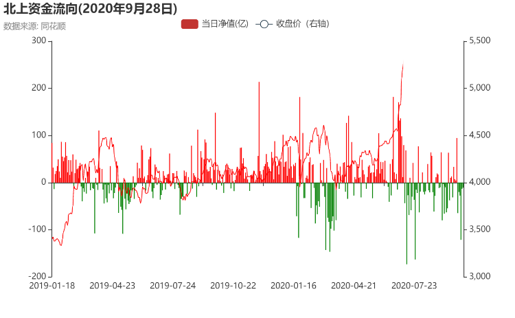 北上今天还是继续流出,中午11点开始的下跌和下午的震荡下跌都是北上开的枪,但好在流出的金额已经不大,暂时看还能接受。