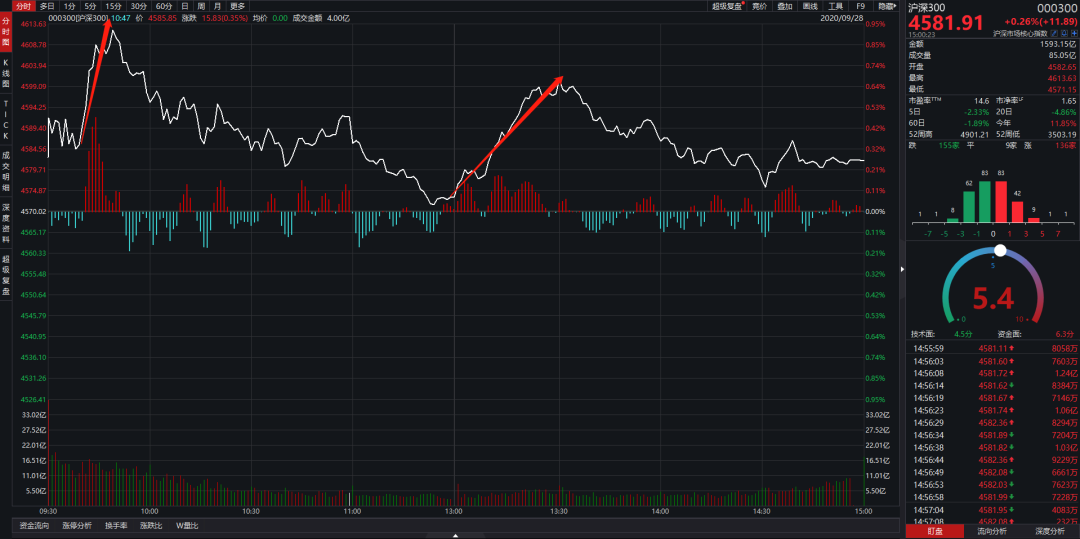 今天上午和下午的两次反攻其实都是机会,但后续没有资金跟上,分时看就全是一波流。这背后说明资金没有任何追高的想法,都在担心8天假期的风险。