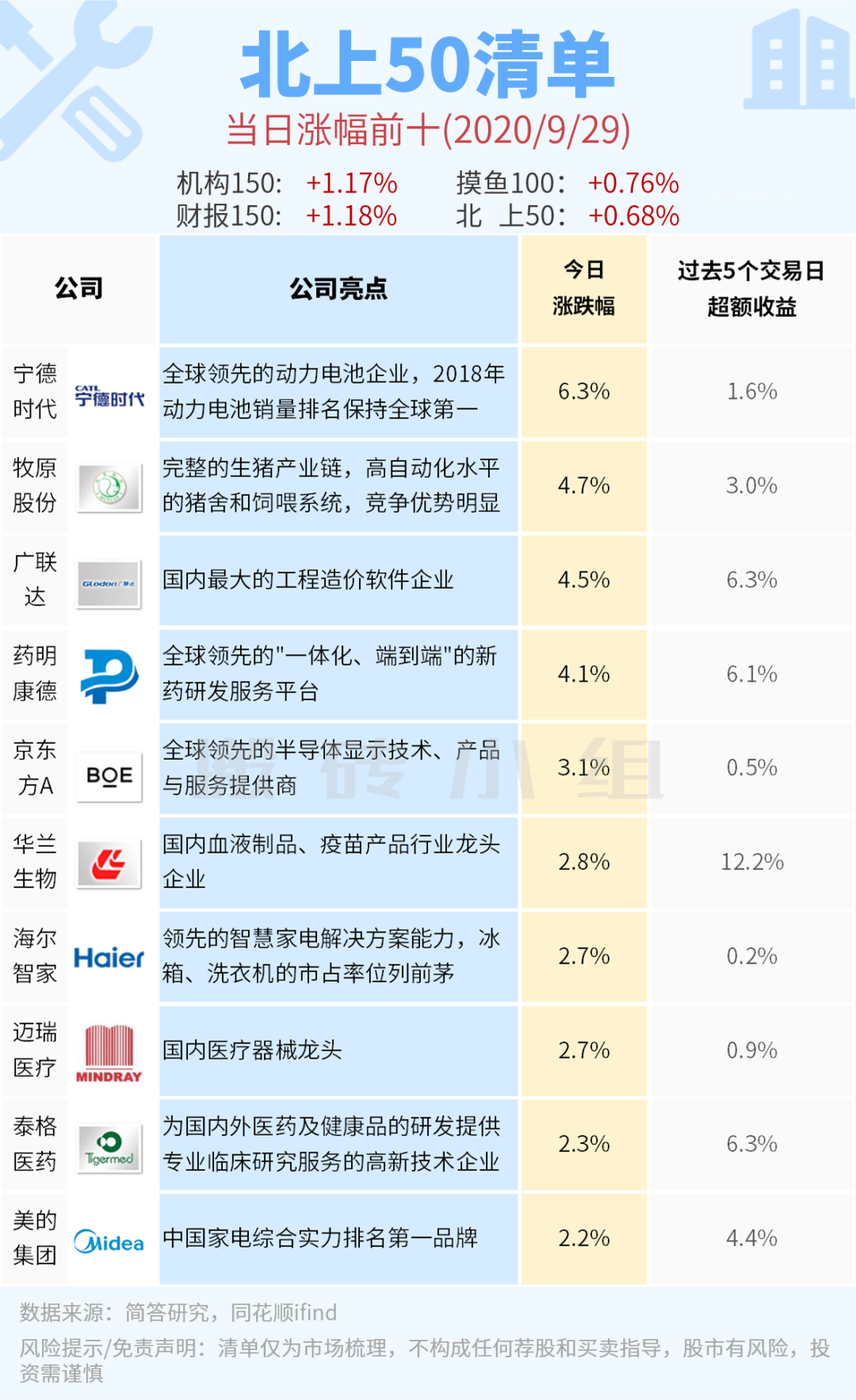 北上50今天表现一般,涨幅第一的宁德在上面已经聊过了,剩下的没啥特别有意思的。