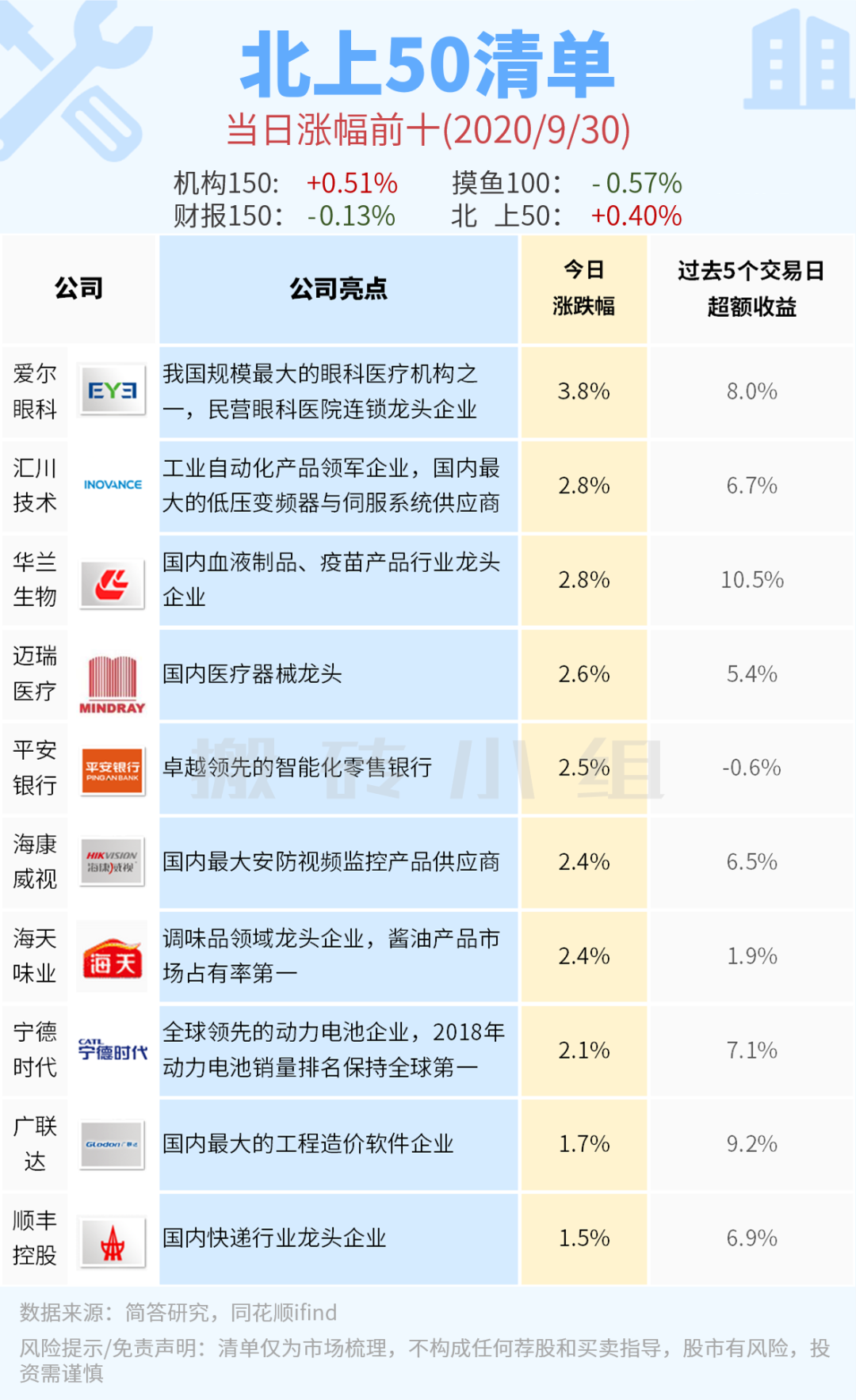 北上50这块没有太大的变动,国庆节后会更新三季度北上50的清单,下周五的复盘记得来看。