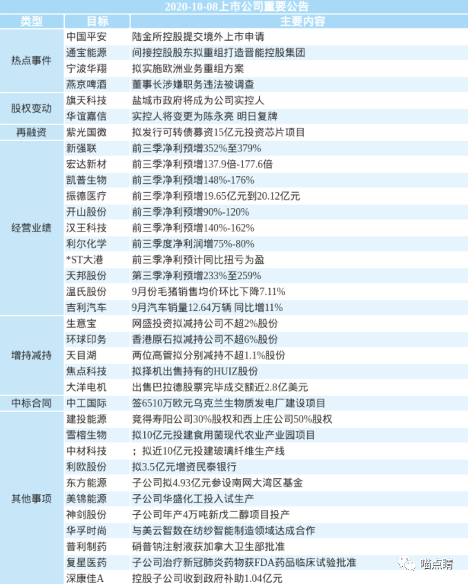 2、分拆上市:中国中车子公司中车时代电气拟科创板上市;徐工机械拟将控股子公司徐工信息分拆至创业板上市;白云山拟分拆子公司广州医药H股上市;建发股份拟将孙公司建发物业分拆至香港联交所主板上市。分拆上市遍地开花。
