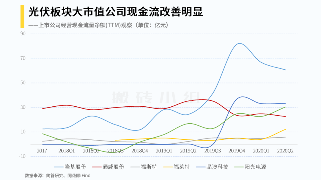 光伏和风电在2018年Q3之前其实现金流非常烂,但是2018年Q3开始出现了明显的反转,因为年报信息有滞后性,大部分普通投资者根据2018Q3和2018年报的公开资料确认这个信号是到了2019年5月份的时候了。