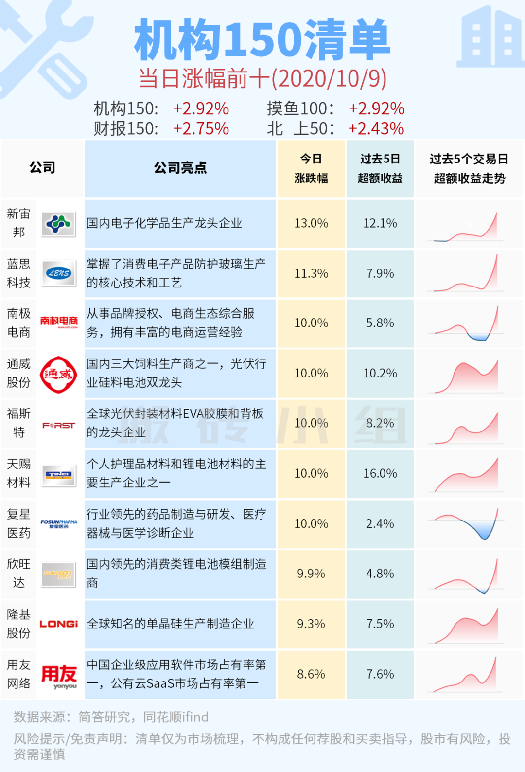 还可以看到一个发生了陡峭变化的公司,晶澳科技,是2019年Q3开始突然爆发的,之前一直很平庸,主要是因为借壳天业通联,数据没有追溯调整,是不连续的状态。它对应的上涨主升浪是今年5月份开始的,其实也是3季报、年报确认了高增之后快速走强的。