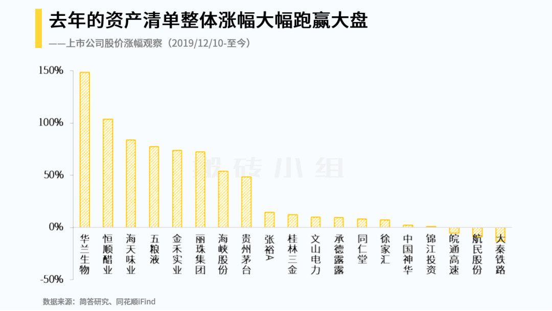 这个清单最让人开心的就是提前一年捕获华兰生物、恒顺醋业、海天味业这样的大牛股,当时的逻辑很简单,优秀的资产风险较低,优秀的资产很多都有强劲现金流的支持。