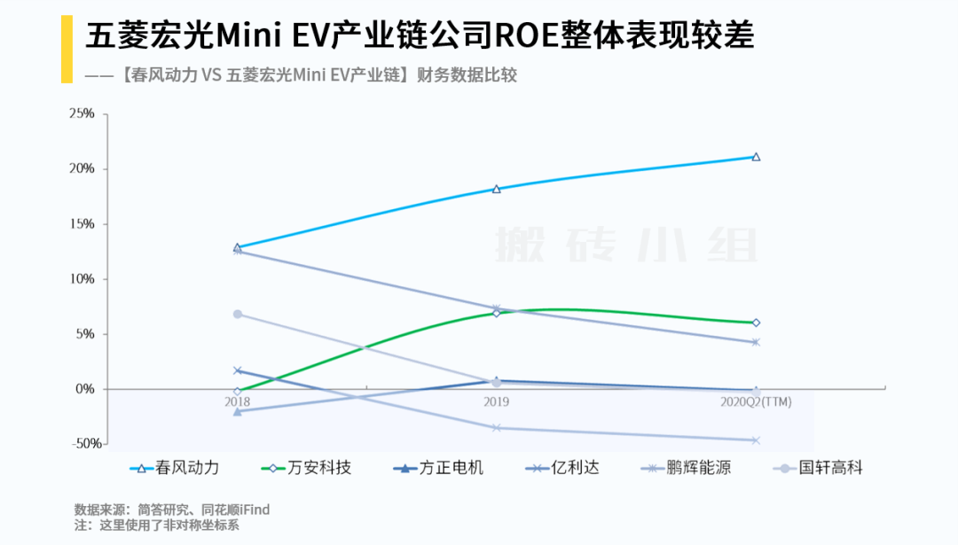 在净利率上,春风动力2019年净利率9.54%,宏光MINI供应链上的公司与春风动力的数据差得还挺远。