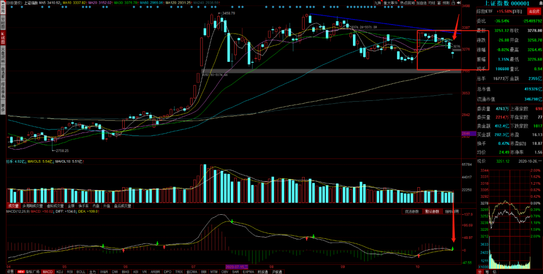 二是趋势指标提示谨慎。首先是10日和20日均线开始拐头向下,5/10/20/30这4个向下的均线对指数将会形成压制。