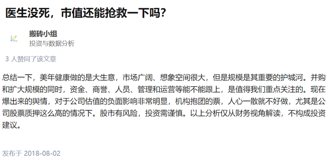 熟悉摸鱼的老读者可能清楚,我们在2018年就写过美年健康的财务分析,这篇文章现在在网上还能看到。