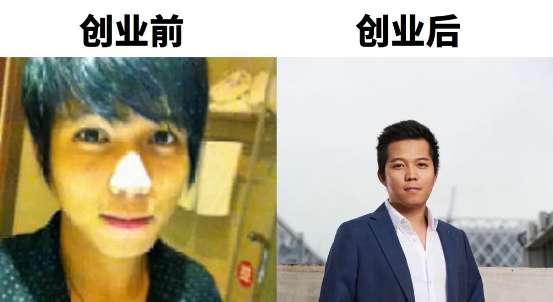 两张照片一对比,就能看到一个曾经放荡不羁的中二少年,因为创业,饱经毒打,被生活磨平了棱角,创业是有代价的,这可以说是很多创业小伙伴的真实写照了,不过大部分创业者是干不到上市财务自由的,最后可能还是被困在房价的焦虑里……