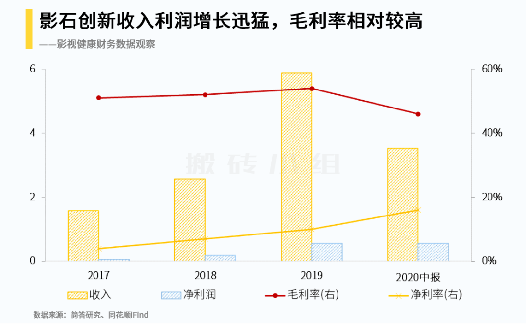 公司的财务数据表现不错,收入从2017年的1.59亿元增长到2019年的5.88亿元,2年增长了近3倍,利润因为基数低,增速更夸张,毛利率在2017-2019年都维持在50%以上。