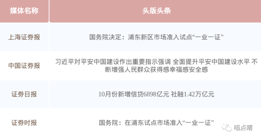 3、央妈公布了10月的金融数据,其中社融规模增量为1.42万亿,预期1.4万亿,比上年同期多5493亿元。M2货币供应同比增长10.5%,预期10.8%,比上年同期高2.1个百分点。货币及信用环境依旧松紧适度,整体符合预期。