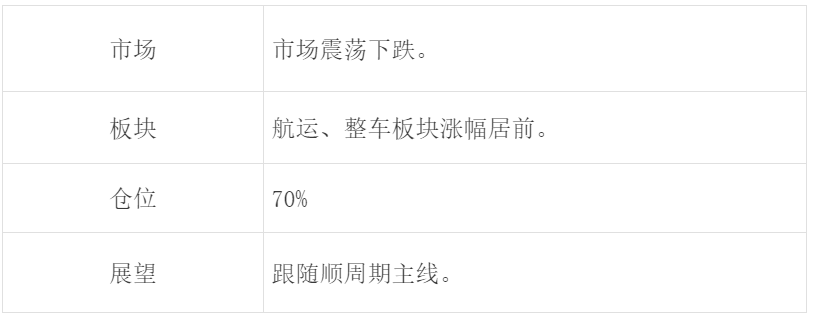 市场这段时间保持震荡,系统性风险应该没有。我暂时的策略是跟住顺周期主线,用机动仓位做低吸高抛就好。