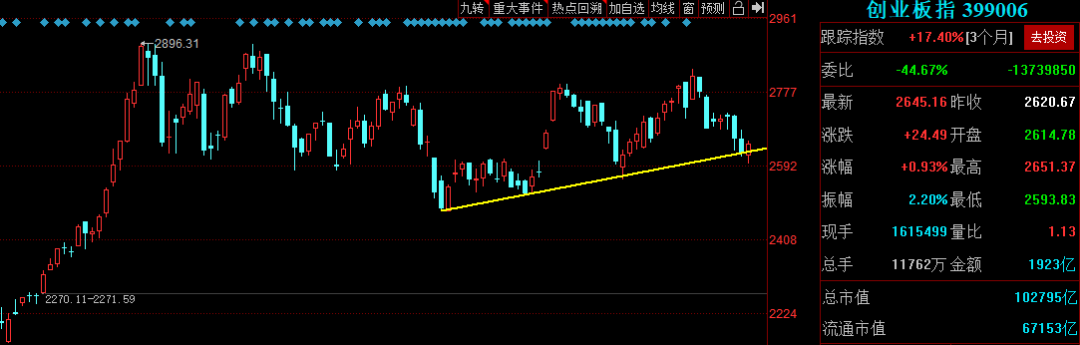 指数层面看今天有见小底的意思,特别是创业板在这个位置是有支撑的,接下来几天我估计可以稍微乐观一点,从图上看感觉得反弹了。