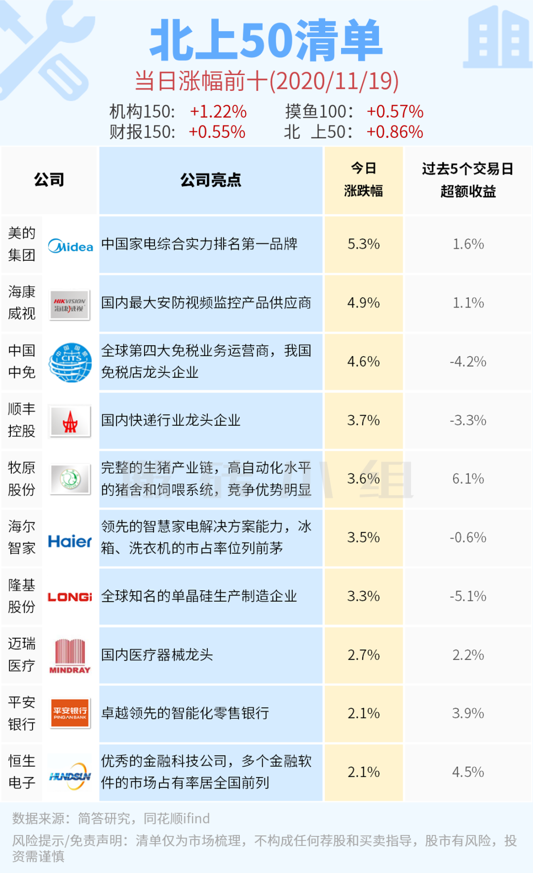 北上50榜单里今天排名第一的是美的,盘中创新下了历史新高,这波趋势真走得非常顺畅。消息层面看昨天有个刺激大宗消费下乡的政策,家电涨了但汽车却是见利好出货,市场对高低估值的选择很明显了。