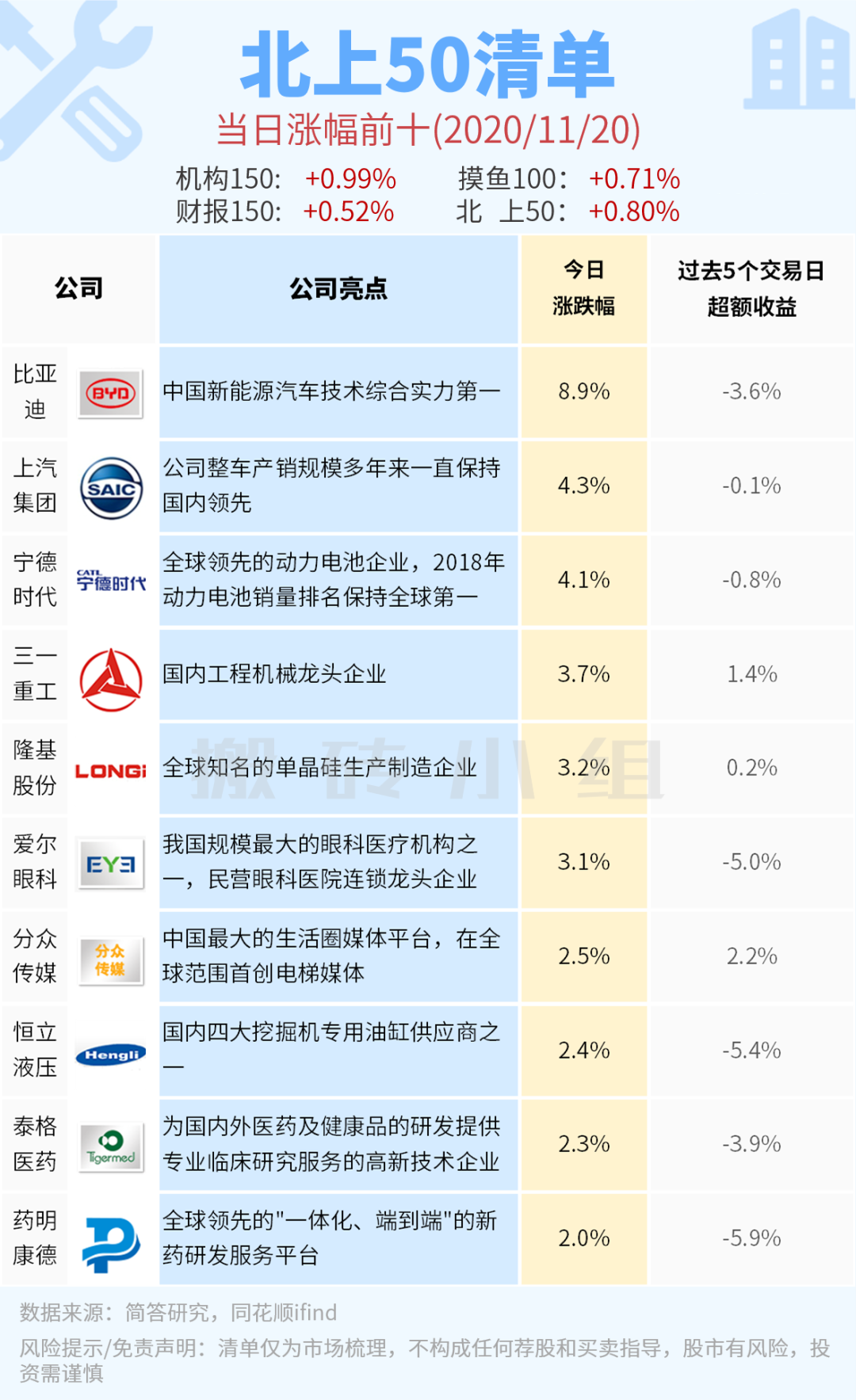 【北上50涨幅前10】