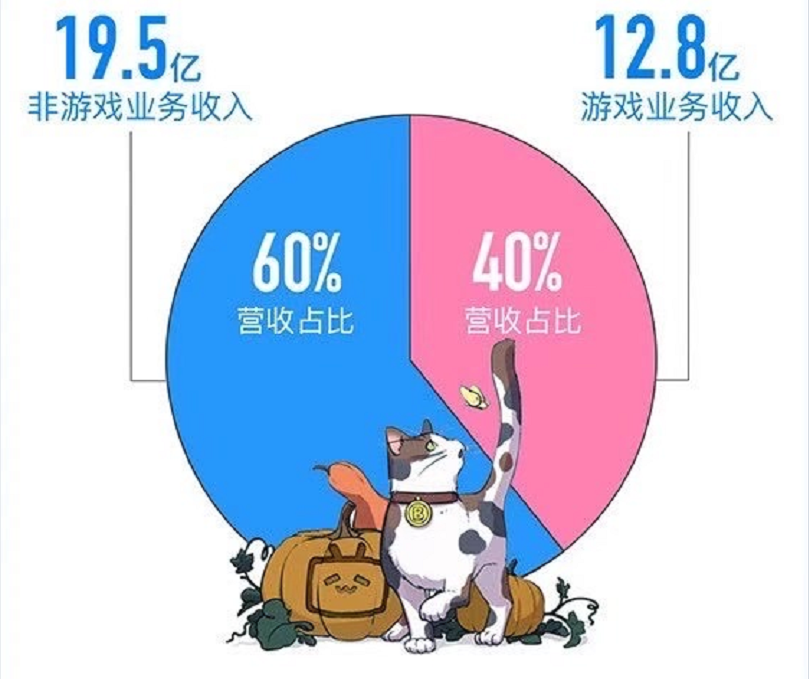 上次写B站的时候,我们说B站是一家非典型游戏公司,因为在B站2017年的收入中,移动游戏占了83.38%,后来B站全力推行去游戏化,现在每次发财报都会强调一下公司游戏业务收入占比下滑,想撕掉自己游戏公司的标签,目前游戏业务收入占比已经下降到了40%。