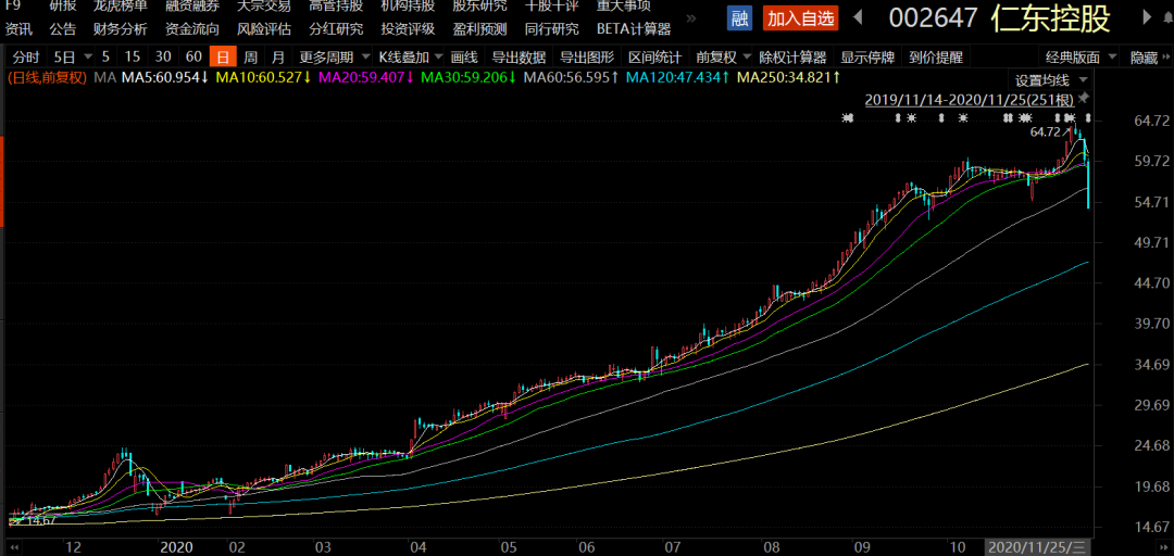 今天还有个异动,就是大妖股终于崩了,走势无比奇葩的仁东控股今天放量跌停,现在还有一堆散户在里面,看着最后连拉的几个小阳线,当时后台还有读者diss我来着,现在看,恐怕他是被骗上车,要含泪吃面了。。。
