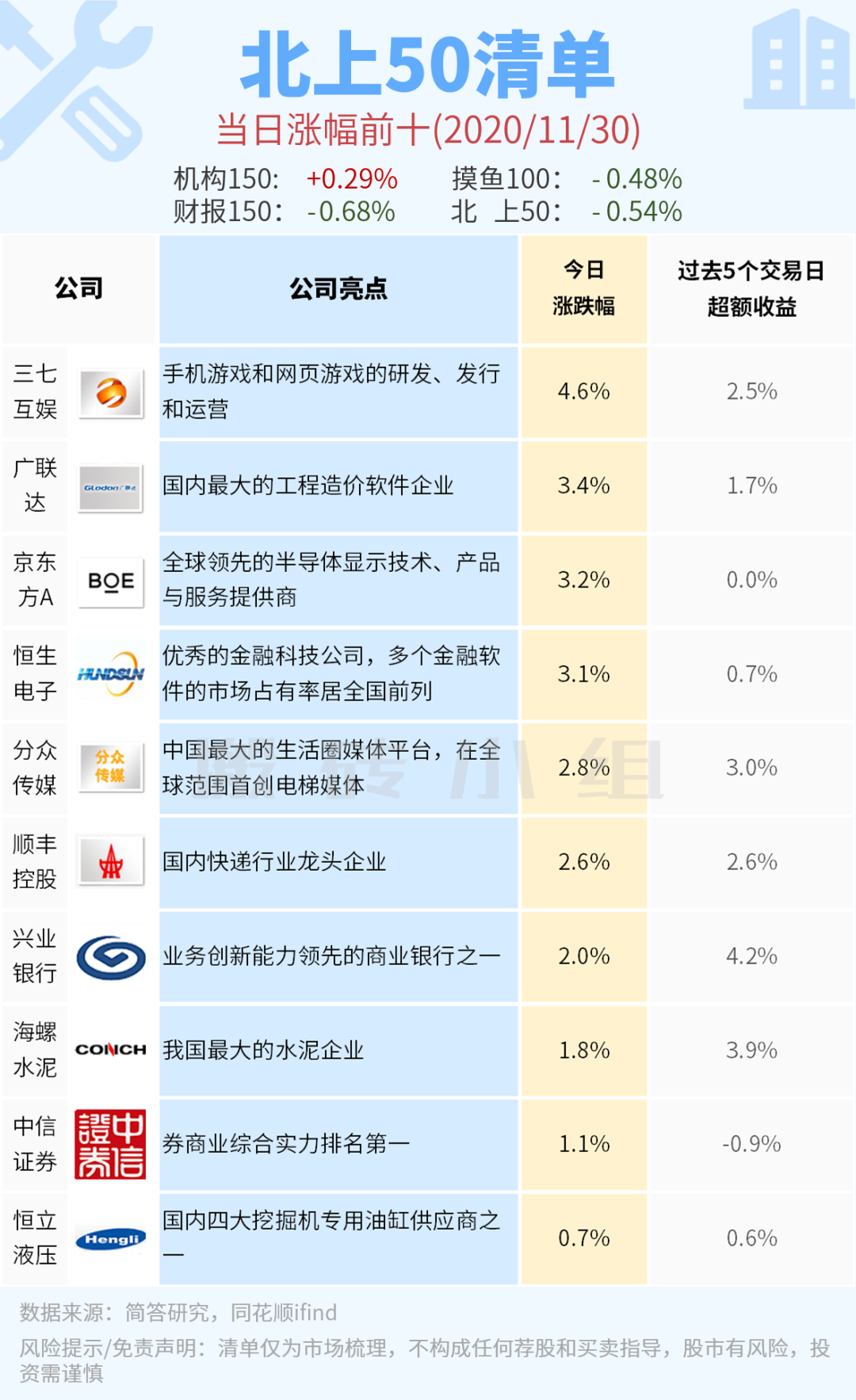 北上50榜单上今天涨幅第一的是三七互娱,A股的游戏公司最近基本都腰斩了,主要是产品没啥竞争力,流量都被腾讯这些大厂给抢了,还有像米哈游这种新势力出来。这种大趋势下跌的有兴趣也最好等右侧,谁也不知道跌到哪里能是底。