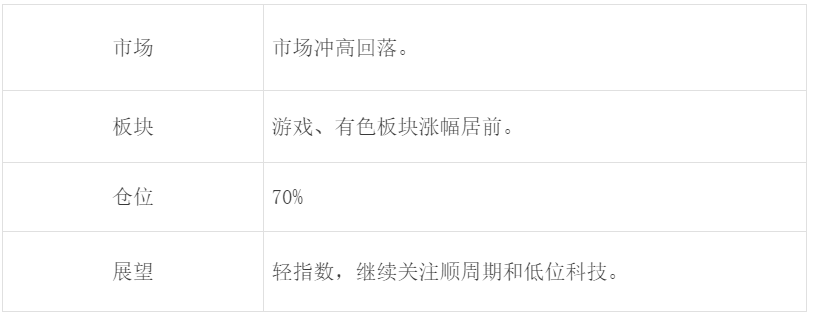 结构上继续看好顺周期品种,有色、化工、金融、家电、军工等等都会有机会,并且也要注意一下低位的科技,明年一季度大概率会有一次科技方向的行情的,现在是做功课的时候了。
