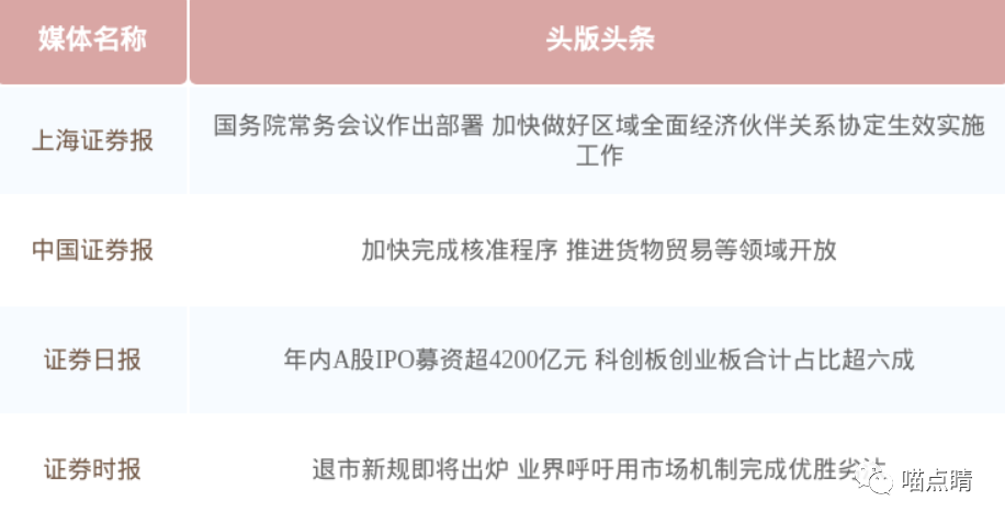 今天先说一下关于喵点睛的重大变动,明天开始我们的更新时间将会提前约一小时,大概在早间7点18分左右进行更新,以便给大家在盘前预留更多的时间,同时也照顾下通勤时间较早的老铁们。喜欢早起的咱以后可以提前见了,爱睡懒觉的醒来看也不耽误,就这。