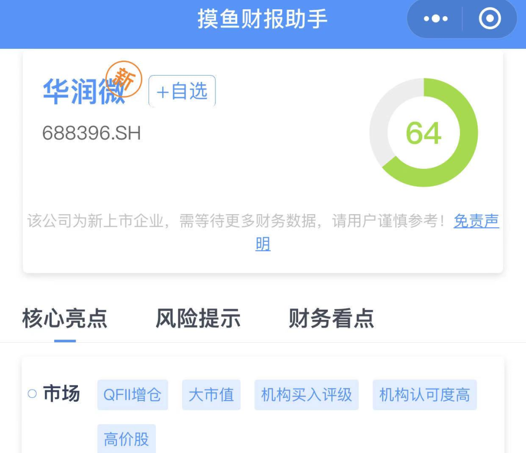 摸鱼评分64分。公司的核心亮点包括机构买入评级、机构认可度高、QFII增仓等,需要注意的点包括解禁将近、非标渠道欠款多等。