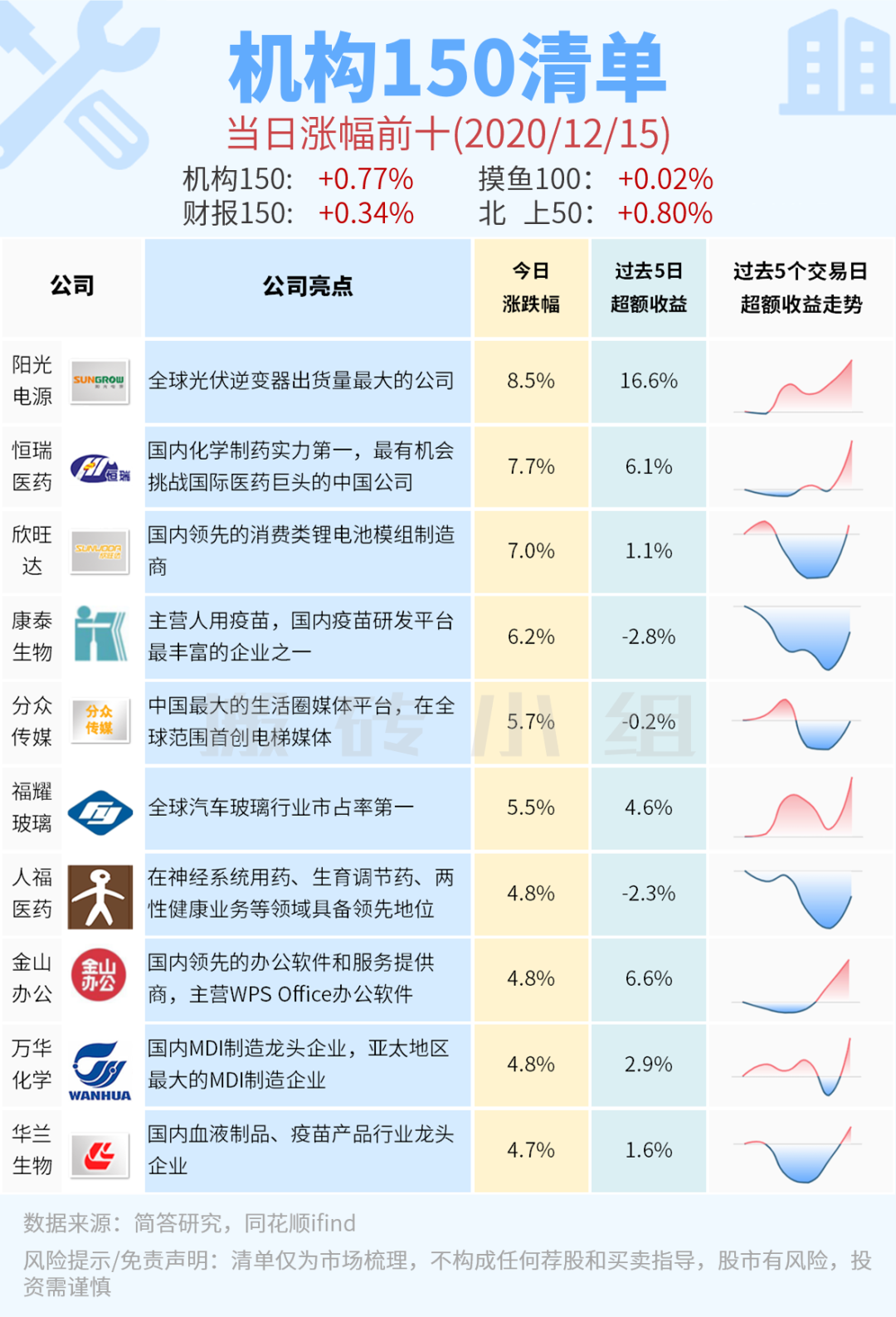 不过另一边,机构年底结账的情况也很多,机构抱团票闪崩跌停的例子上周就有不少,今天斯达半导、新洁能跌停,立昂微、华润微等公司大跌,现在行情分化得厉害,市场波动比较大,年底了注意守住自己的利润吧。