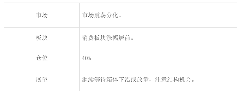 板块上今天也是冰火两重天,皇台酒业复牌大涨带动小酒继续飞,食品饮料今天这个涨法已经有拍毕业照的感觉了。短期这个涨法大多都是情绪推动,这块得注意点,风险随时可能会释放出来。