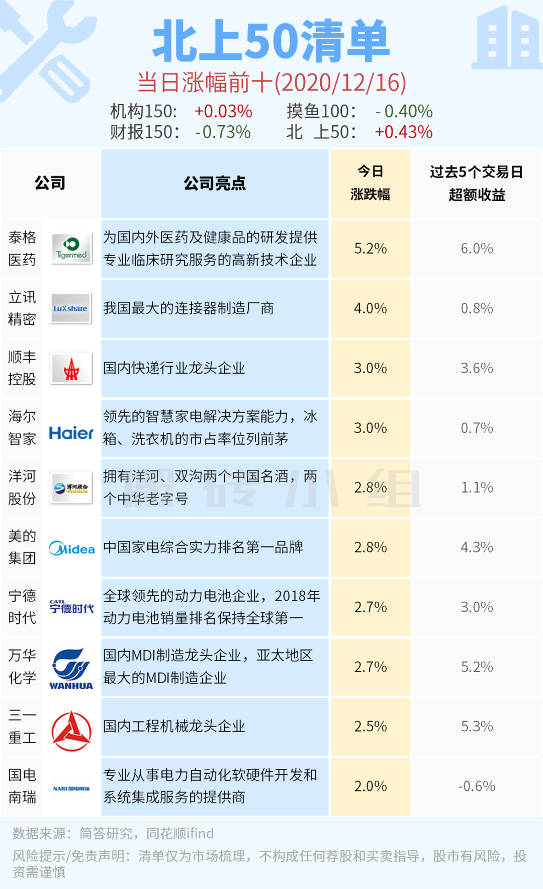 北上50榜单上没啥特别的,涨的都是机构重仓的行业龙头,最近这种风格已经演绎到极致了。