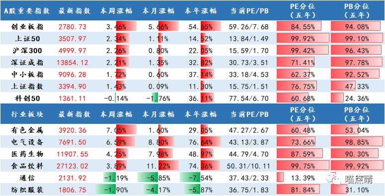 上周在外资的助攻下整体表现尚可,创业板和上证50齐涨,并未出现明显的跷跷板效应,行业方面有色、光伏、医药、白酒表现突出。