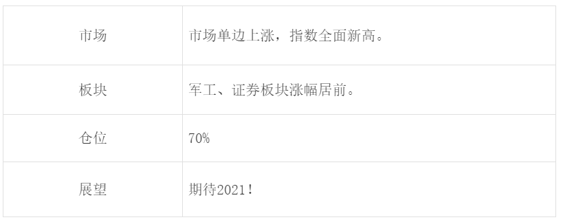 2020年最后一个交易日终于结束了,最后一天市场用大涨新高来收尾真的是非常完美,各大指数全部新高,市场情绪还是非常不错的。