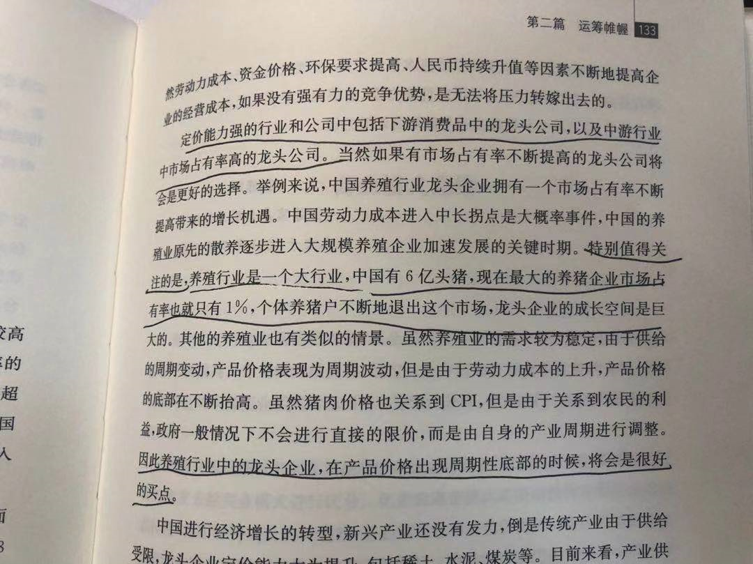今天看一个基金公司出的书,十年前的内容(2011年7月刊发的上海大公募副总袁大师笔记),里面专门有一块就是讲到猪肉,也是巧了,大逻辑大家可以参考,记住产品价格已经不在周期性底部就好。
