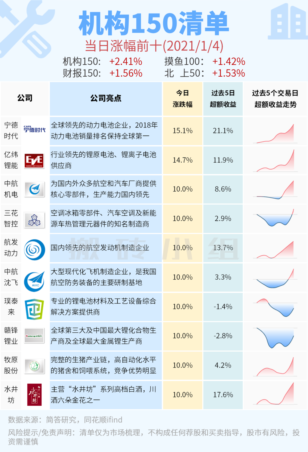 再看看现在的市场,龙头公司新旧更替,热门产业轮番变化,行情已经翻天覆地,跟着市场一起进化,机构150前10全涨停的日子,好好珍惜。