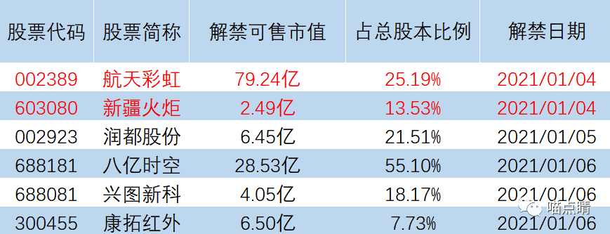 航天彩虹、新疆火炬今日有大额可售市值解禁。