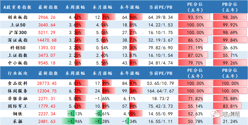 2、上周四两市普涨,上证上涨1.72%,深市上涨1.89%,创业板上涨2.27%,涨跌中位数1%,涨跌停比为58:8。两市成交额9617.48亿元,北上净流入30.78亿元。证券、军工、旅游涨幅居前,煤炭、燃气水务领跌。