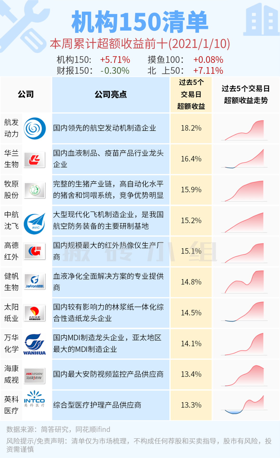 这周的机构150榜单上,出现了一些变化。军工的表现抢眼,而它并不是此前机构抱团的核心对象。同时还出现太阳纸业,造纸板块上周走得很强,太阳纸业股价创了新高,中顺洁柔周末发布了回购计划,回购金额不超过3.6亿元。