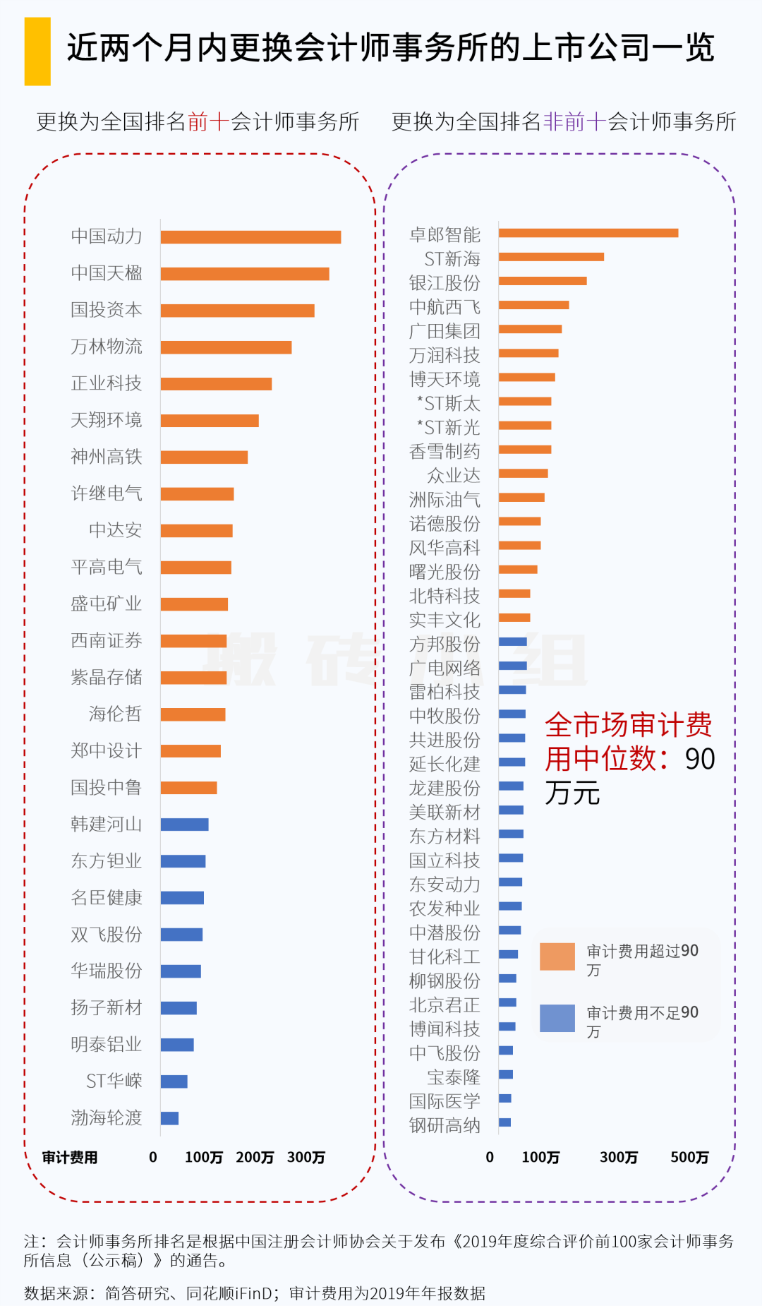 我扫了一遍过去两个月,更换过会计师事务所的公司清单,居然还不少: