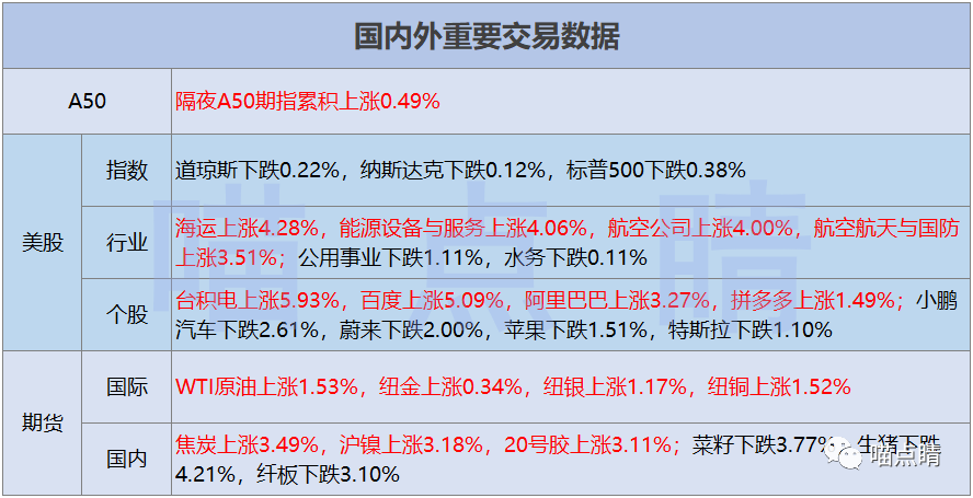 2、昨天两市普遍下跌,上证下跌0.91%,深市下跌1.92%,创业板下跌1.31%,涨跌中位数0.6%,涨跌停比为89:43。两市成交额1.12万亿元,北上净流入51.07亿元。交运、计算机、农业涨幅居前,军工、种植、白酒领跌。