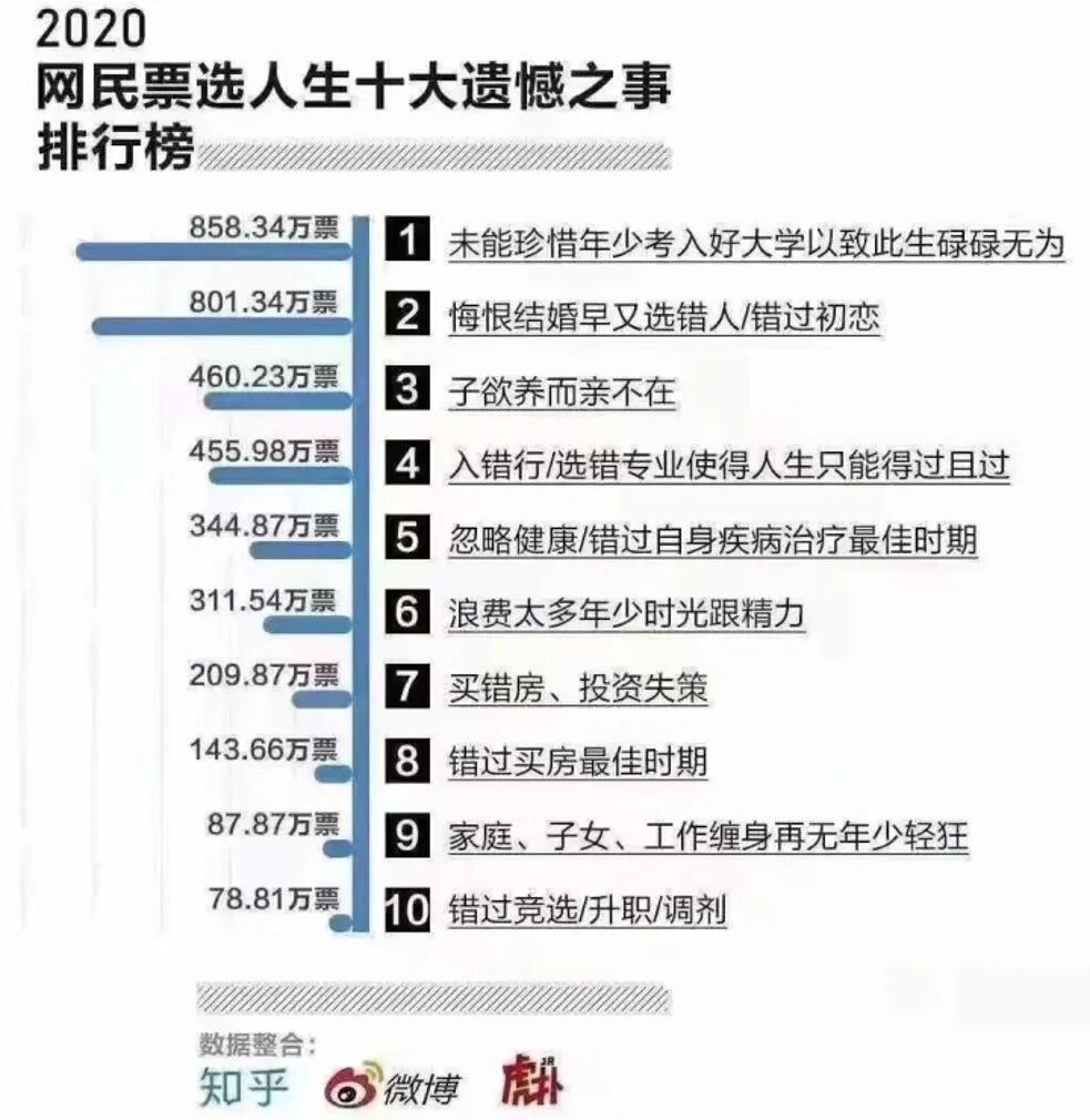 看到一张热传的图,是2020年人生十大遗憾的投票结果:
