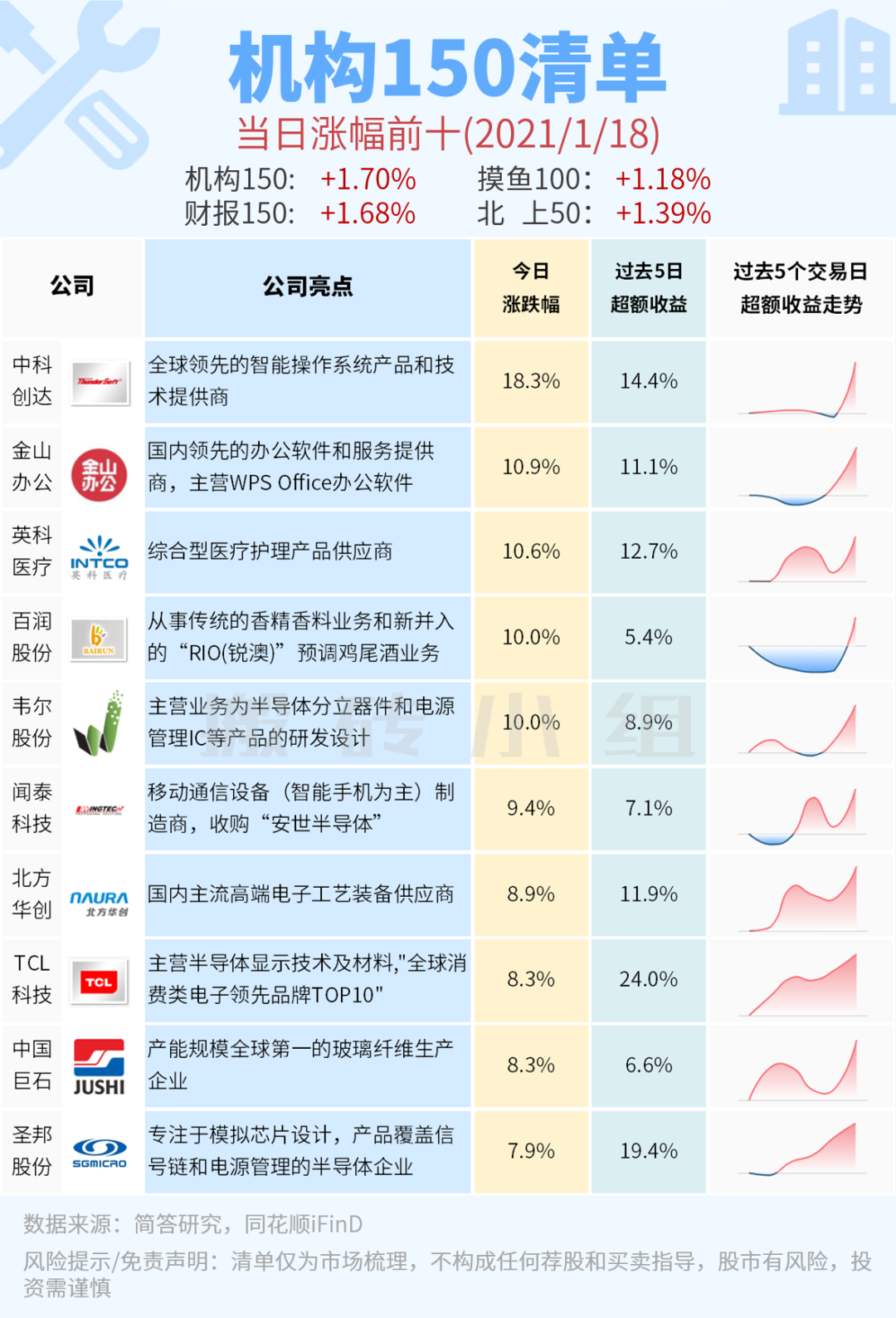晚上韦尔还放了公告,净利润增长400%多,还是挺超预期的,这种现象应该不是孤例,还有很多公司会放超预期的业绩出来,这条线一时半会冷不了。
