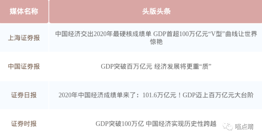 3、昨天,最新的经济数据出炉,2020年中国GDP为101.60万亿元,同比增长2.3%,人均GDP连续第二年超过1万美元,进入中等偏上收入国家行列。这是我国GDP首次超过100万亿元,此体量预计占世界经济比重17%。其中,四季度增长6.5%,明显高于前三季度,有加速迹象。经济复苏已经走在路上。