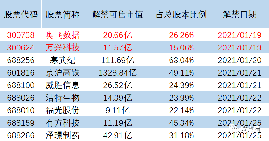 奥飞数据、万兴科技今日有大额可售市值解禁。