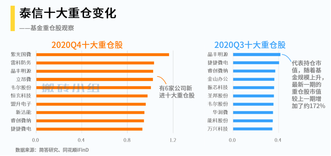 这种风格也跟基金的规模有关系,我们去年关注到泰信的时候,它的规模只有3亿,最新的规模是14.6亿,谈不上什么大基金,船小容易掉头,调仓起来就灵活了许多。