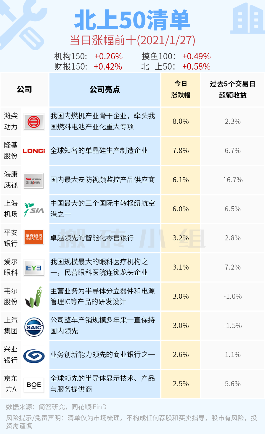 【北上50涨幅前10】