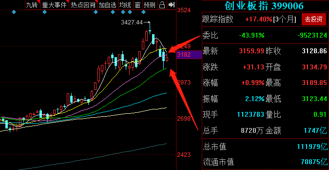今天市场反弹,但本质上看是弱反弹,盘后看还没有站上5日线,谨慎起见仍然以下跌中继的思路来看待。由于创业板日内已经反弹到5日线,仓位上把上周五的超短抄底仓位降下来,短期看市场可能会在均线之间窄幅震荡,等待有效突破这个区间以后再考虑做策略调整。