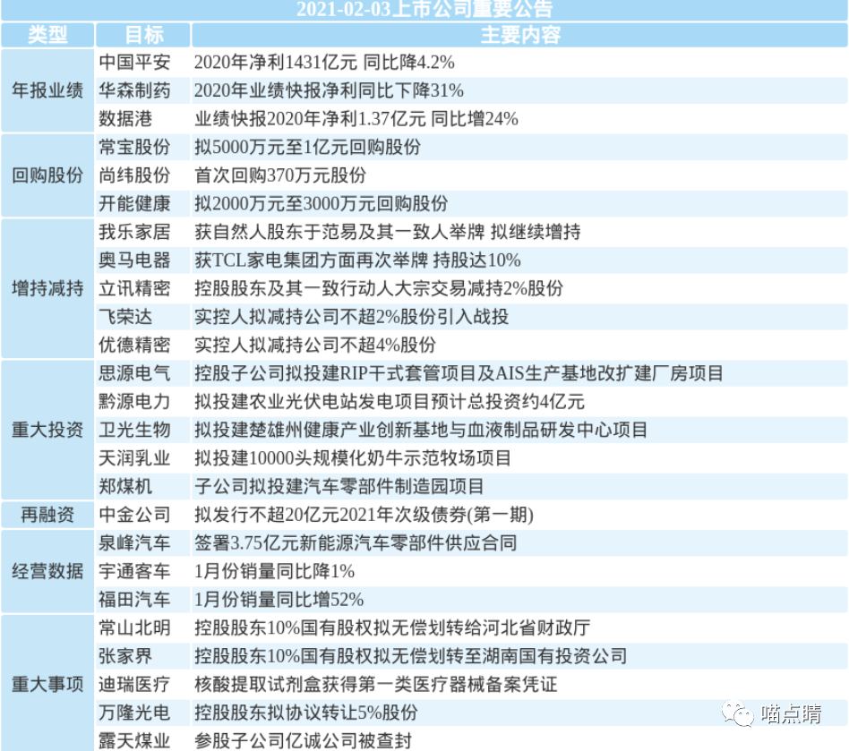 2、奥马电器获TCL家电集团再次举牌,后者于2月1日至2日增持1.37%的公司股份,增持后,TCL家电集团及其一致行动人持有公司9.99997%股份。