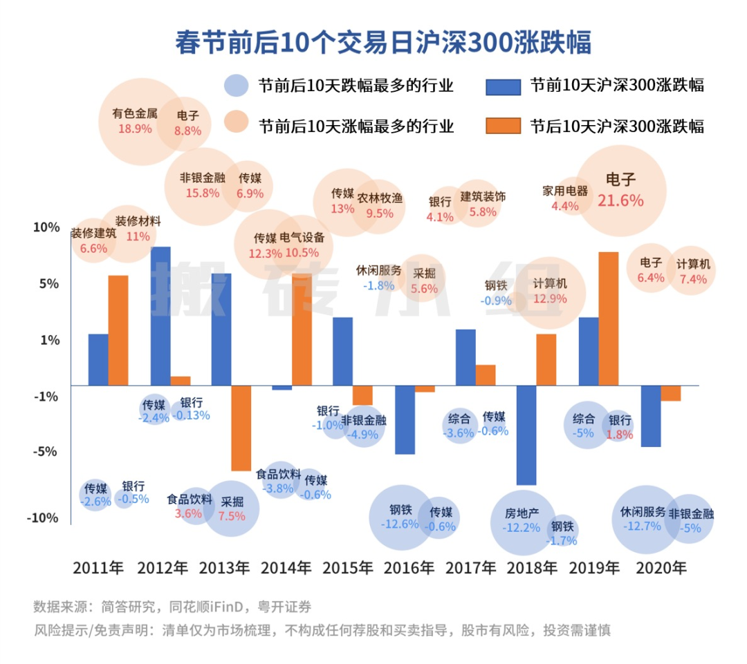 这三个都是有具体利空事件,但是整体看,10年间节前10天沪深300的涨幅概率是70%,而节后的上涨概率是60%,上涨概率还是蛮高的。如果不着急用钱可以持仓过节,牛年要来了。