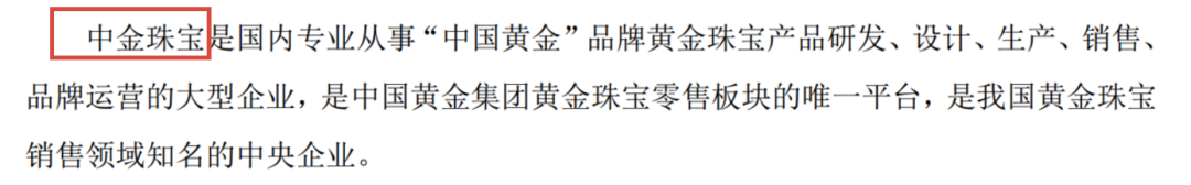 公司的全称叫做中国黄金集团黄金珠宝股份有限公司, 在招股书里面对自己的简称是中金珠宝,中国黄金这个简称曾经属于他的大股东中国黄金集团有限公司。