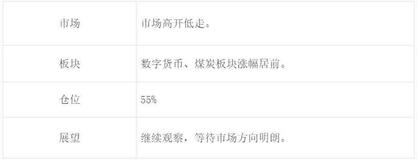今天市场走了一天的切换行情,但是单日的走势不能确认,接下来还要观察多两天才好。这周只有两个交易日,明天周五我估计大伙儿也不会猛干,短期先保持观察吧,以不变应万变。